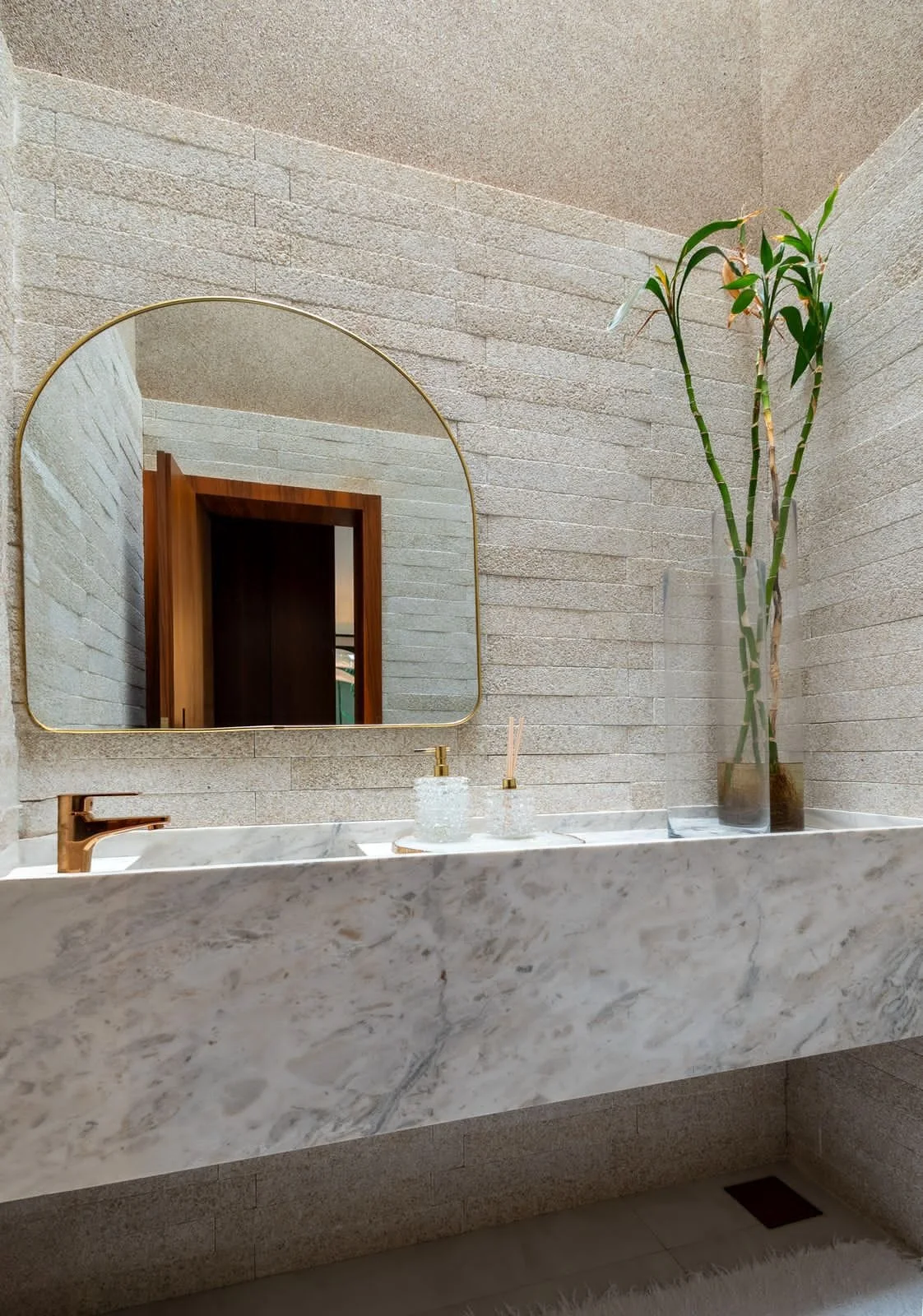 São 04 suítes plenas, incluindo uma suíte master com spa privativo, bancada dupla personalizada e chuveiros Sr. e Sra.