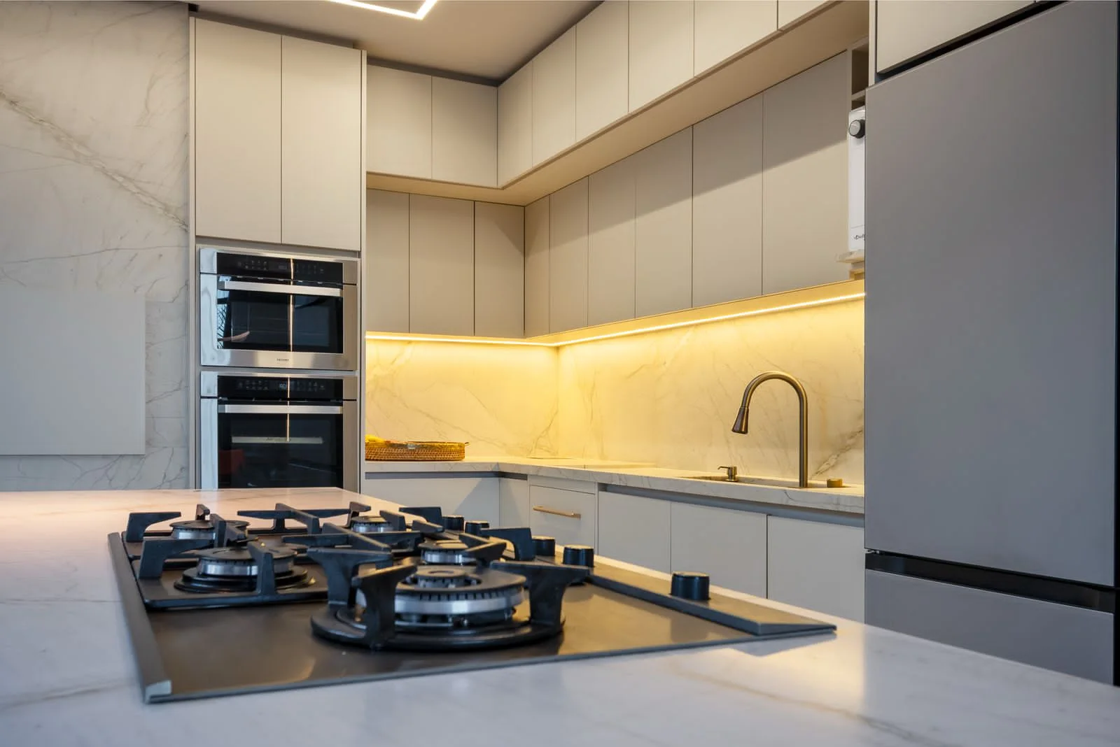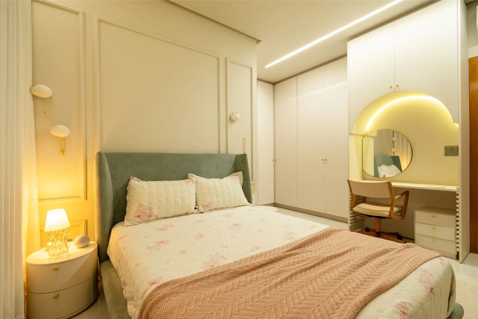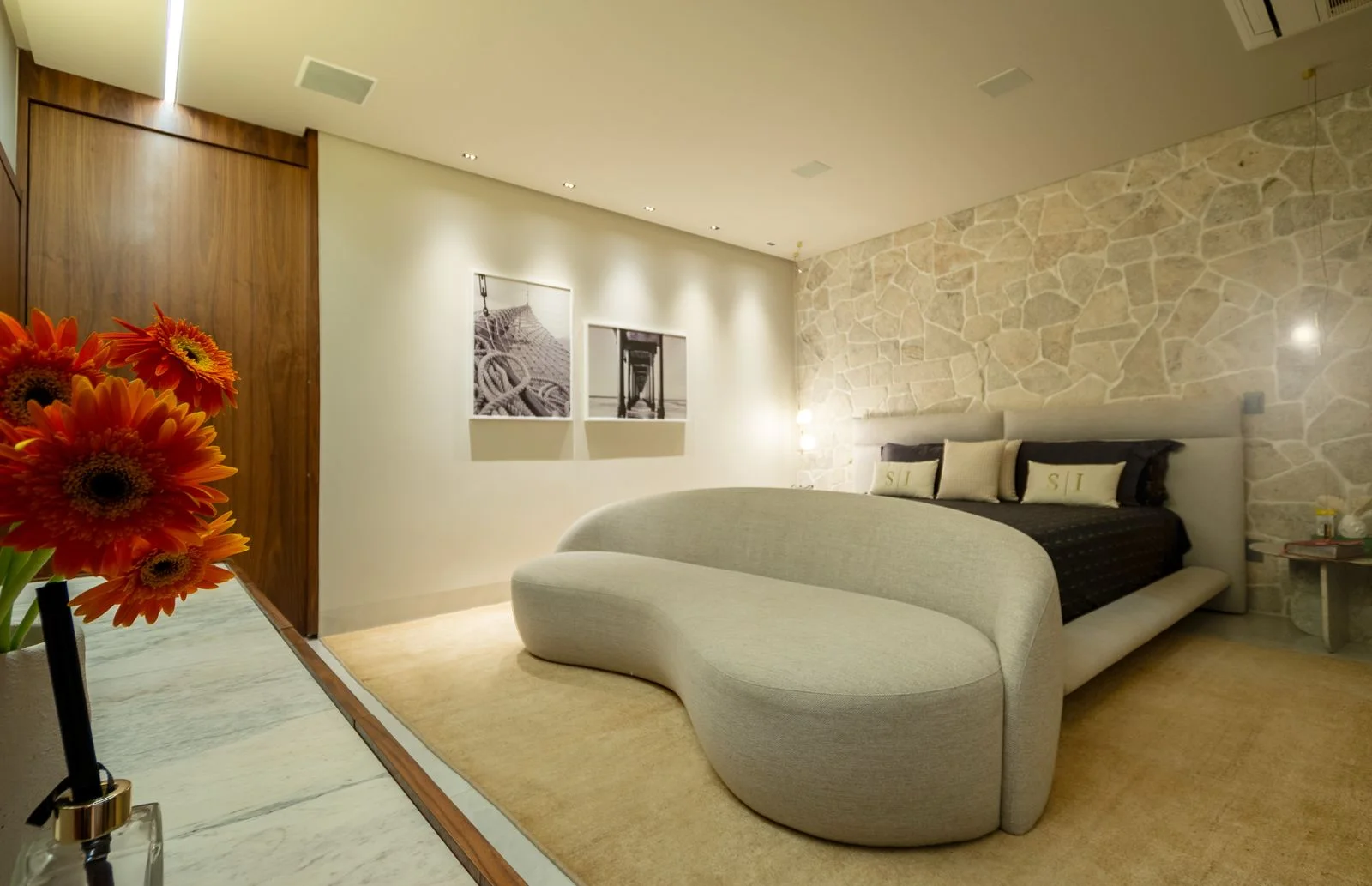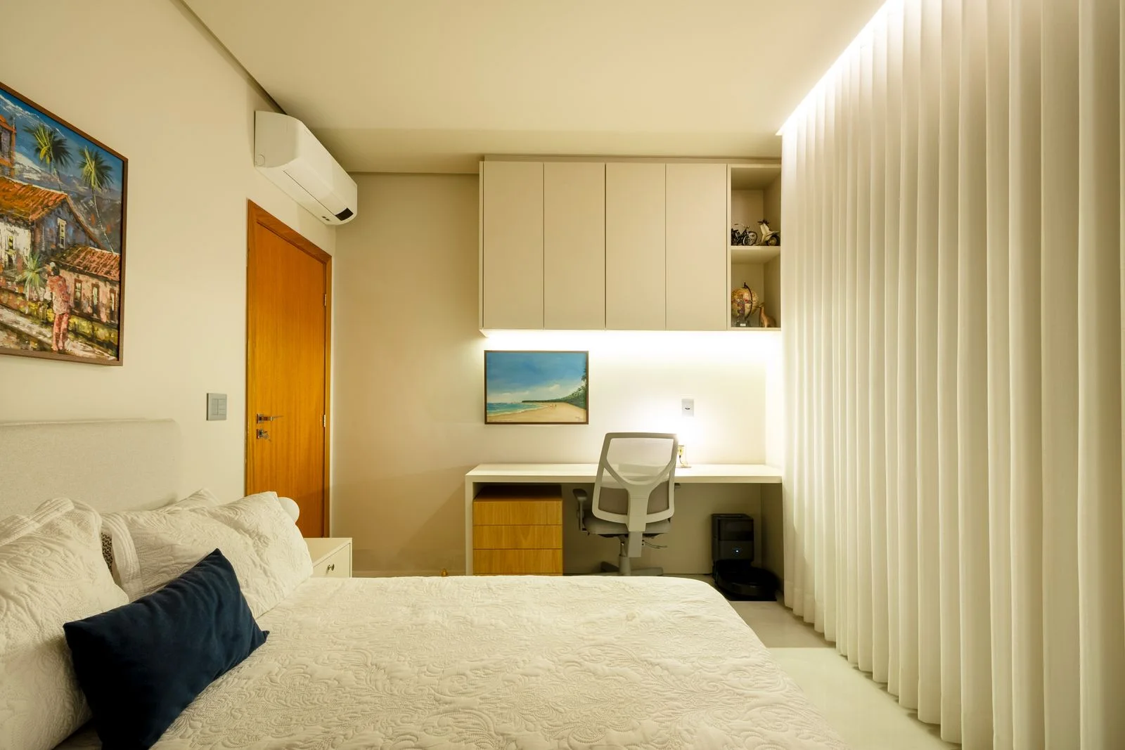Iluminação cuidadosamente planejada para oferecer aconchego e sofisticação.