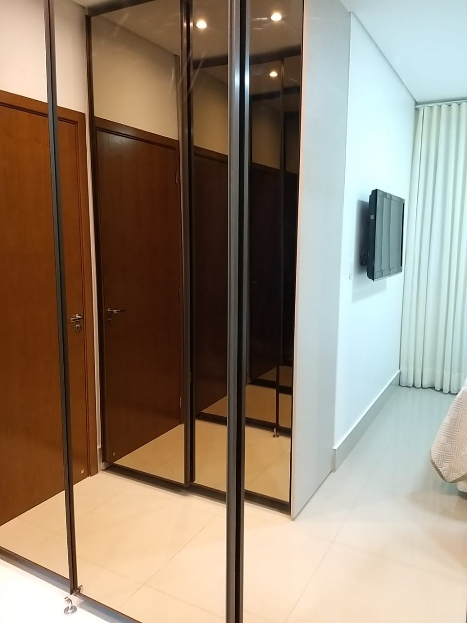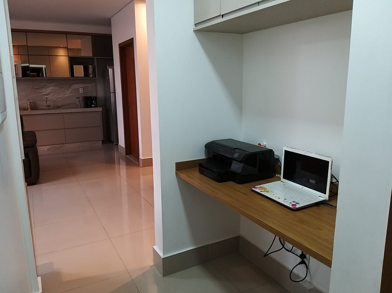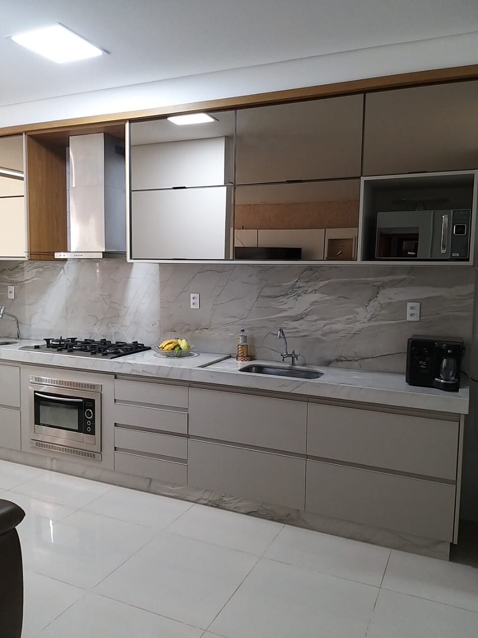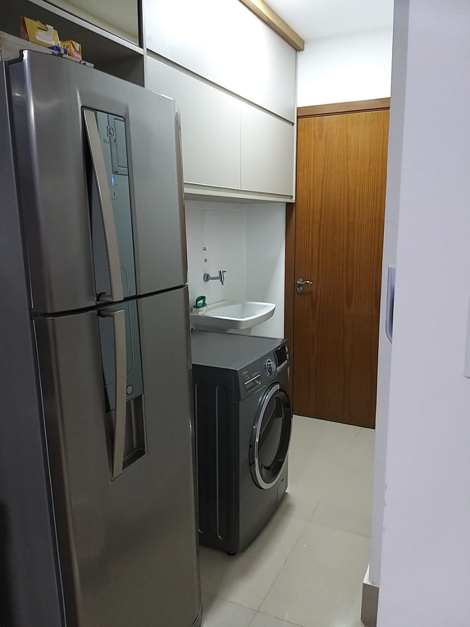 Possui móveis planejados e acabamento com piso em porcelanato.