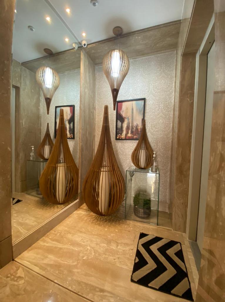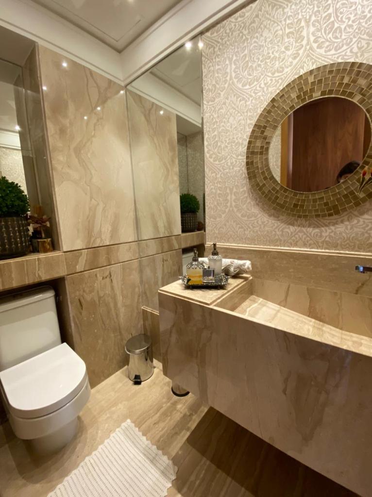 Todos os ambientes com persianas, ar-condicionado e papel de parede. Piso em mármore bege Bahia.