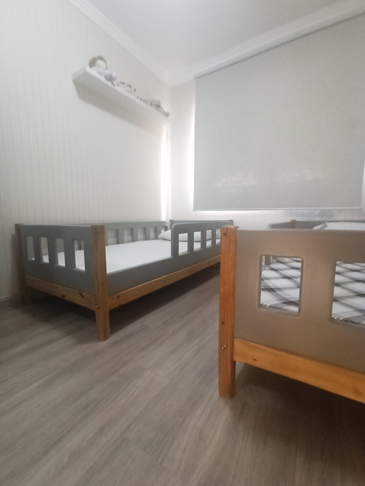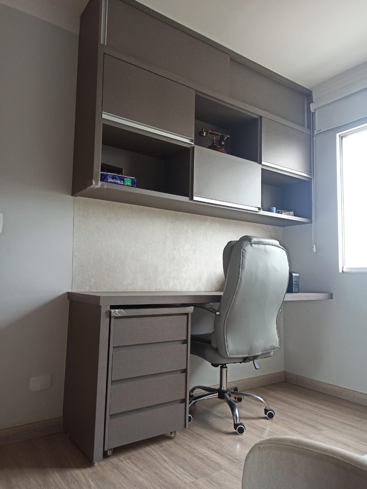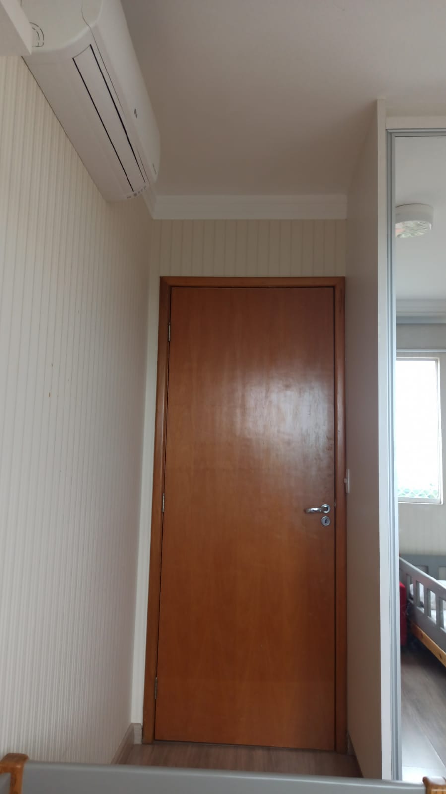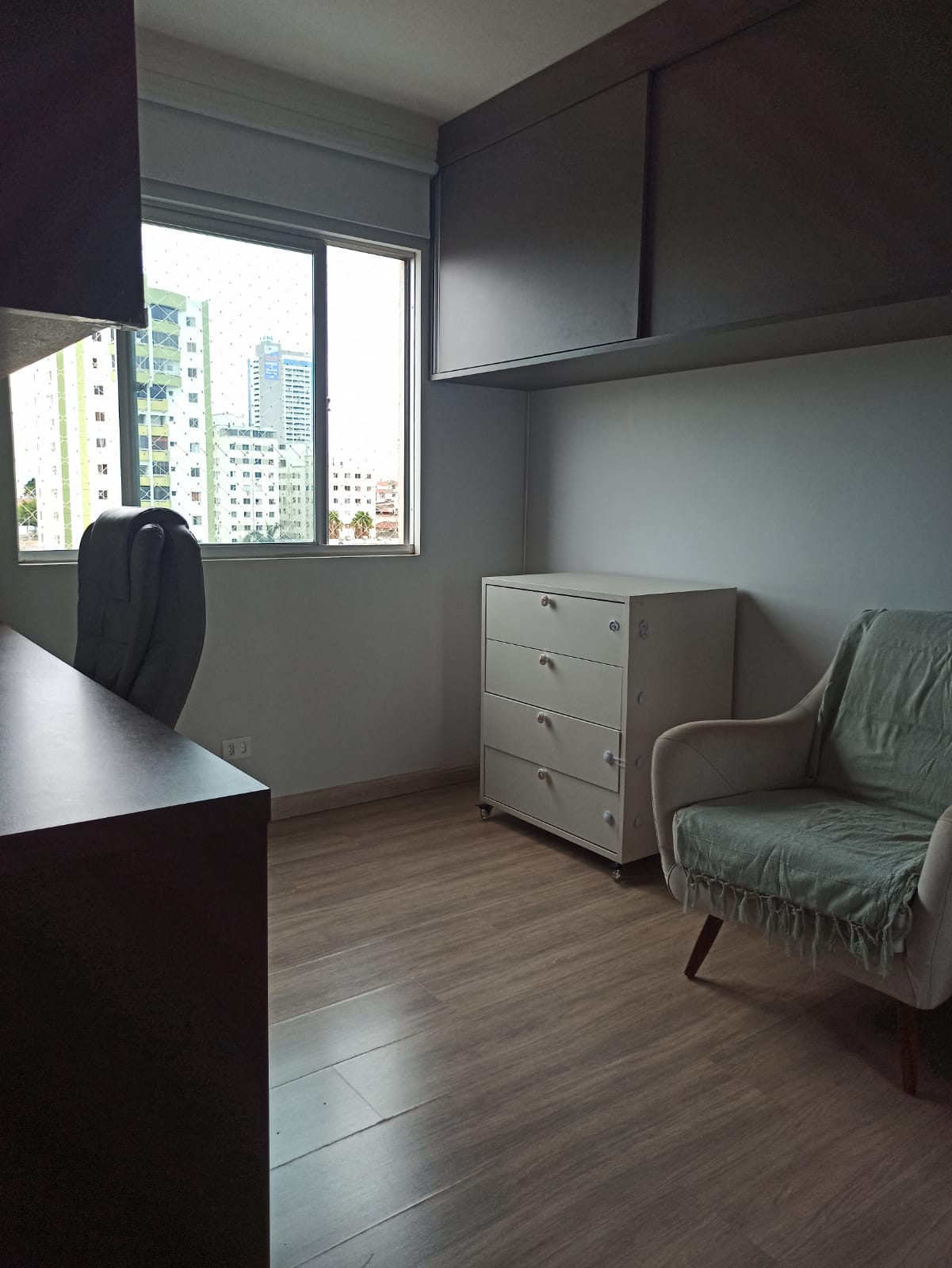 Decorado com papel de parede, projeto luminotécnico, piso vinílico na área social do apartamento (maior conforto térmico).
