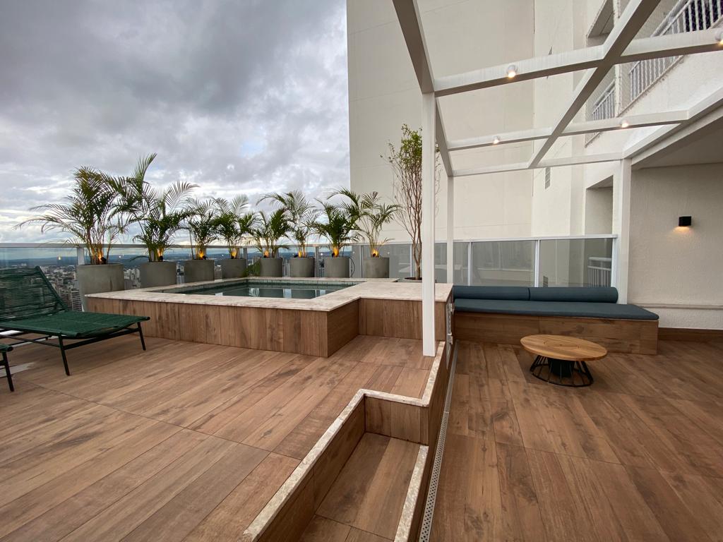 Spa com hidro e deck seco com vista panorâmica.