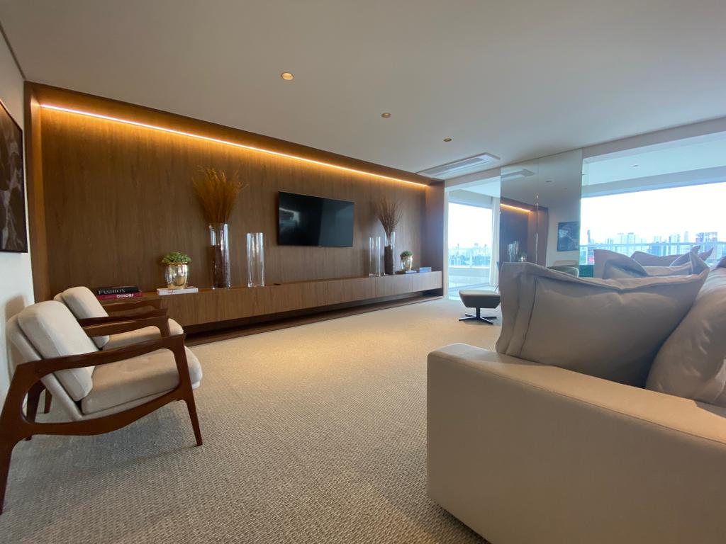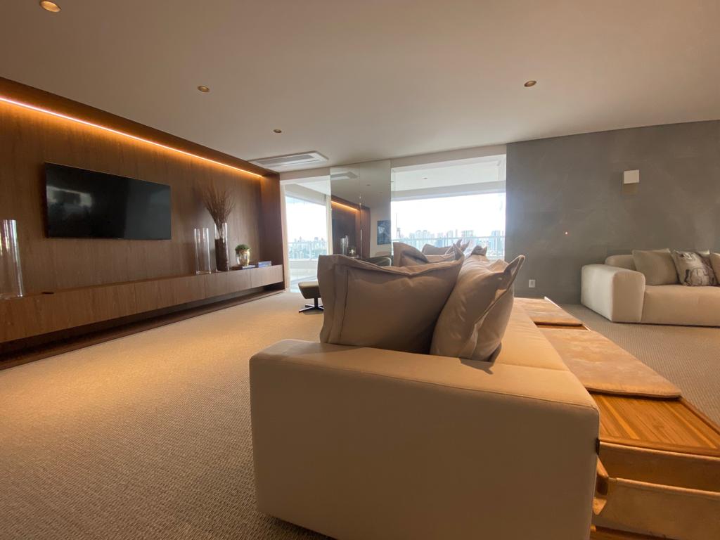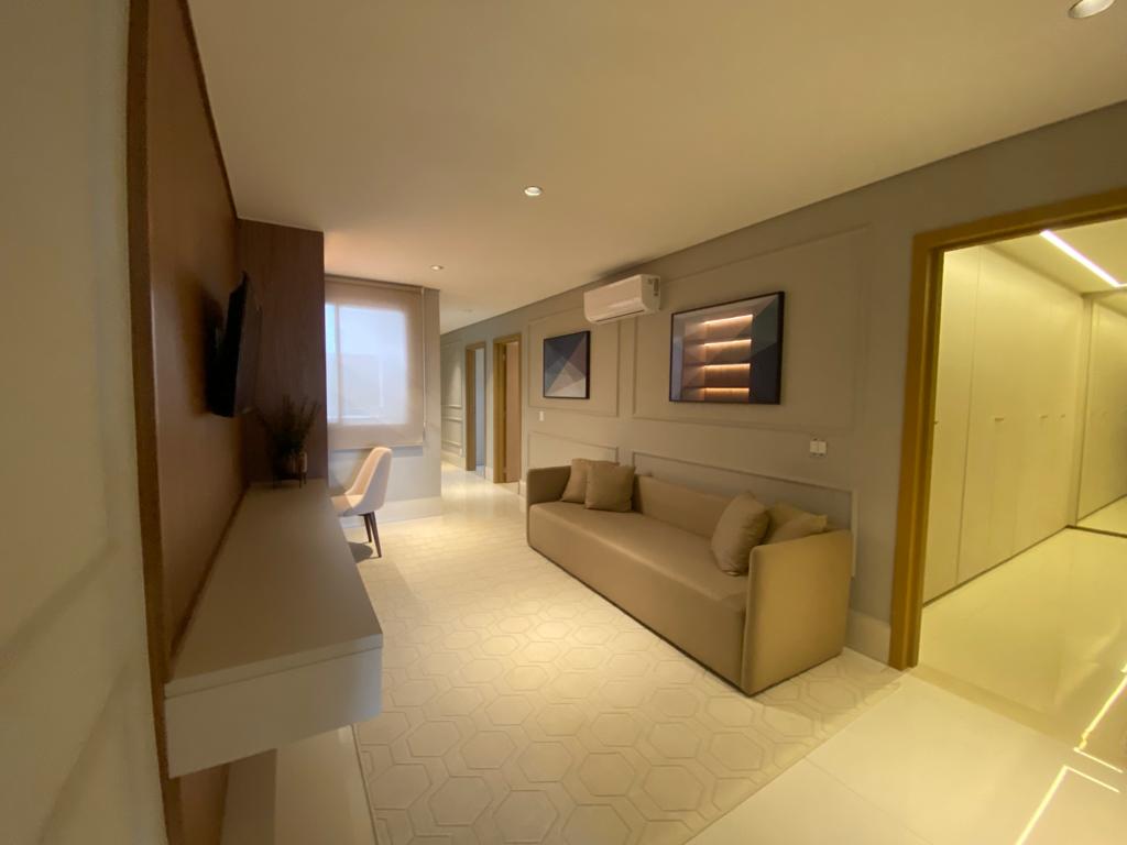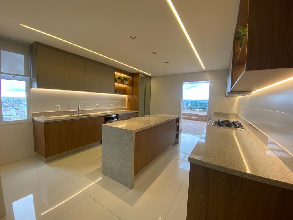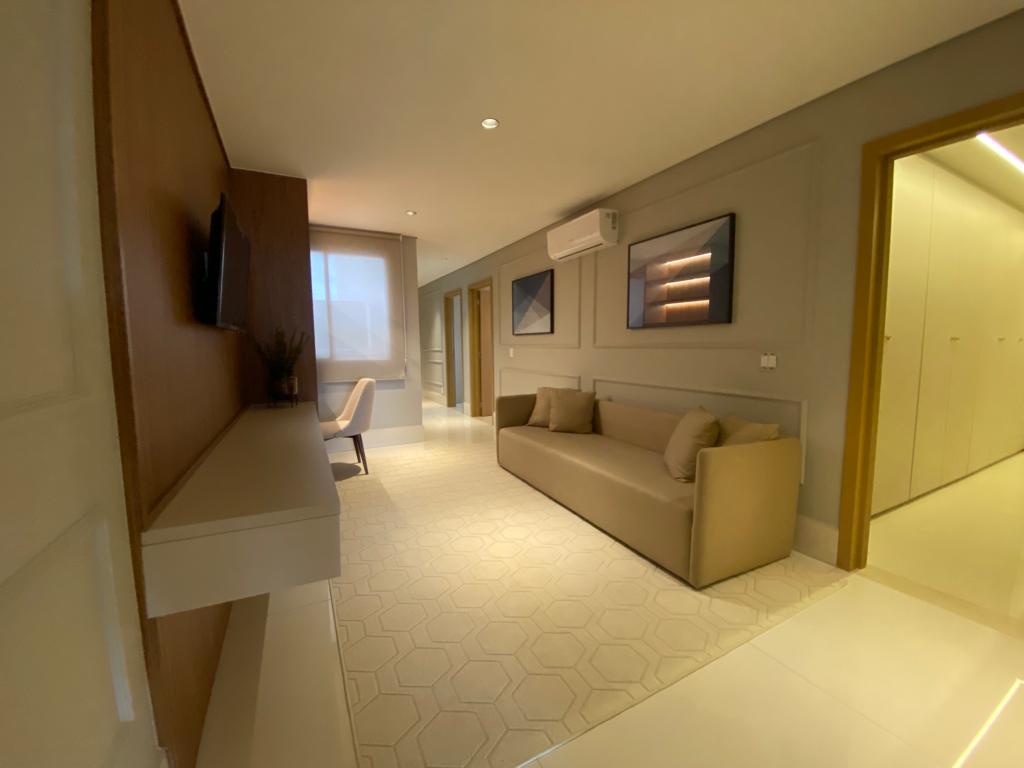 Cobertura com 04 suítes plenas, sala 04 ambientes, integrada a varanda gourmet grill, com churrasqueira a carvão, terraço em extensão a varanda, lavabo decorado.
