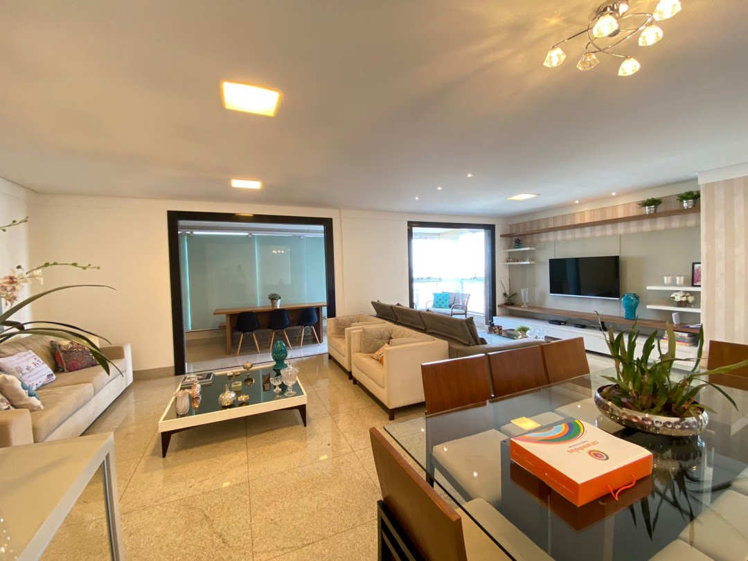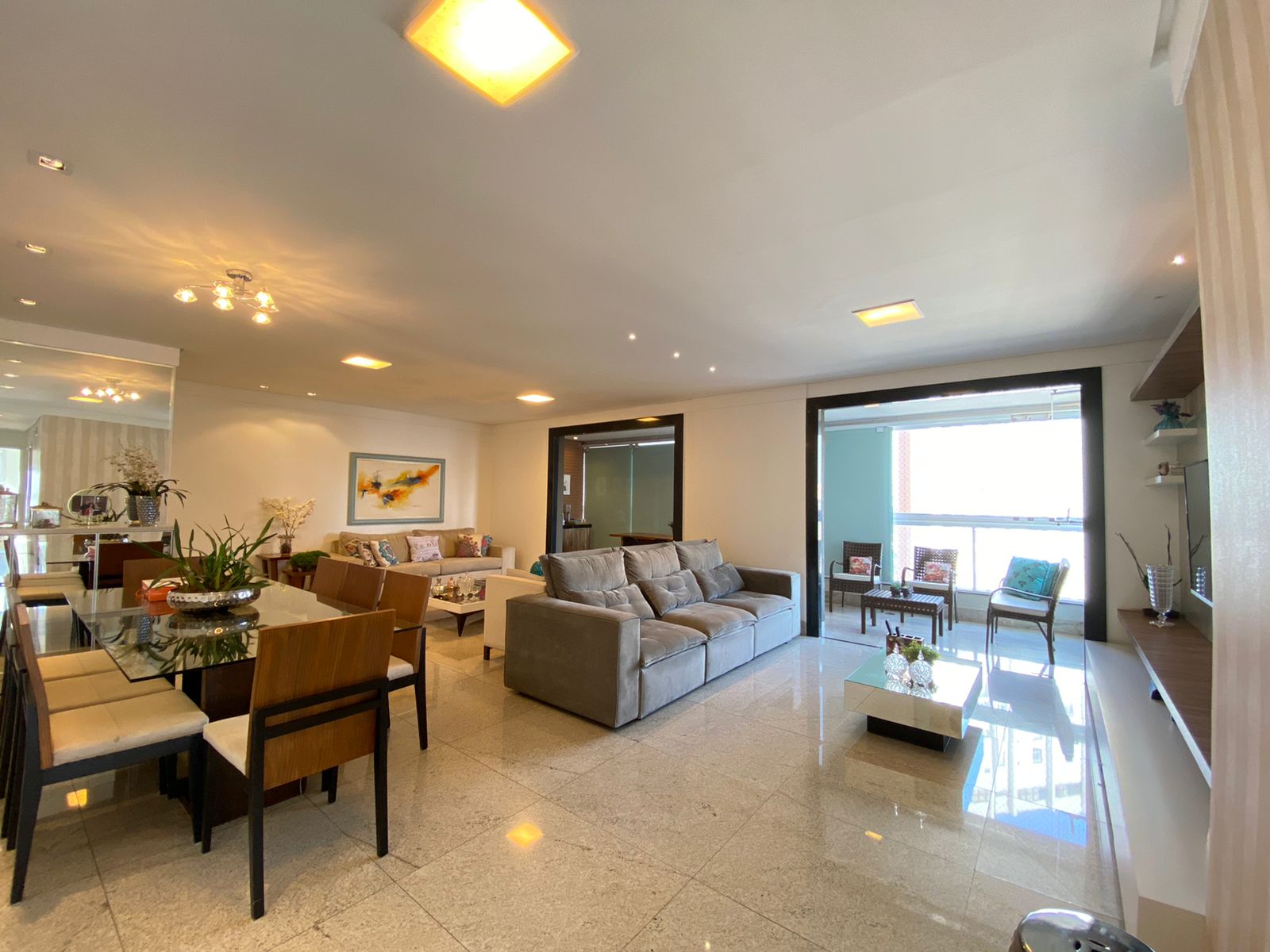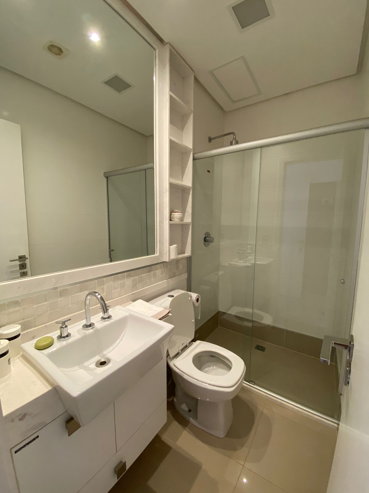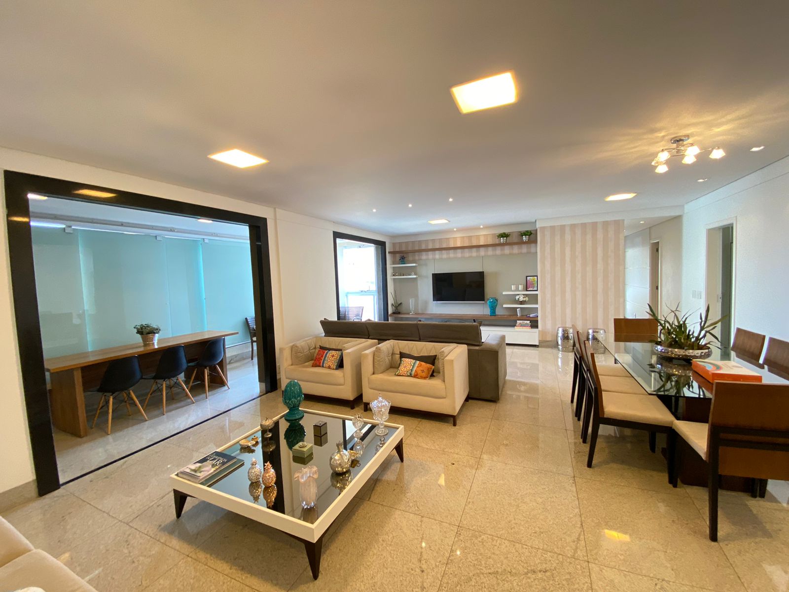 Sala ampla para 3 ambientes, lavabo, varanda com bancada em granito e pia de apoio, com cortina de vidro + porta de correr e piso em porcelanato 80×80 sala e varanda.