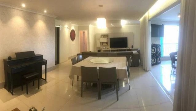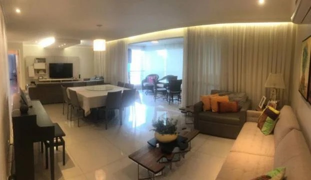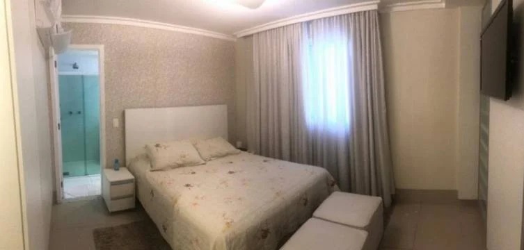 Apartamento 03 suítes plenas climatizadas, sendo a master com hidro, sala 03 ambientes, projeto luminotécnico, lavabo, cozinha completa com armários e equipada.